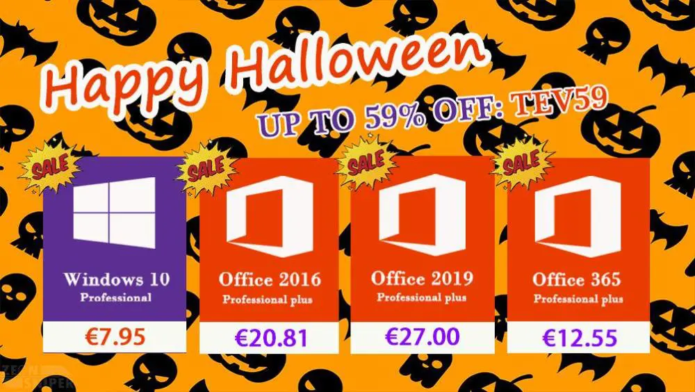 Happy Halloween με προσφορές σε Windows 10 Pro με €7.95 και Office 2016 Pro €20.81