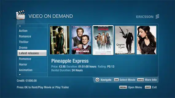 Μέσω των συμβουλευτικών υπηρεσιών και της εφαρμογής συστημάτων, η Ericsson θα είναι η ανάδοχος εταιρεία, καλύπτοντας διαχείριση ψηφιακών δικαιωμάτων σε video servers, λύσεις διαχείρισης περιεχομένου και εγκατάσταση set-top boxes.