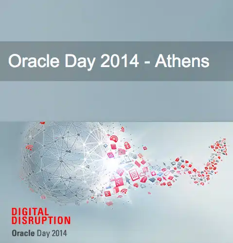 Η εκδήλωση Oracle Day στην Αθήνα έχει προγραμματιστεί για την Πέμπτη 6 Νοεμβρίου, 9.00-16.00 στο ξενοδοχείο Athenaeum Intercontinental και διοργανώνεται υπό την αιγίδα του Συνδέσμου Επιχειρήσεων Πληροφορικής & Επικοινωνιών Ελλάδας (ΣΕΠΕ). Κεντρικοί ομιλητές ο Βασίλης Δημόπουλος, VP Engineered Systems, Oracle ECEMEA και ο Αντώνης Μονοκρούσος, Country Leader Oracle Hellas & Cluster Leader Oracle GCMM.