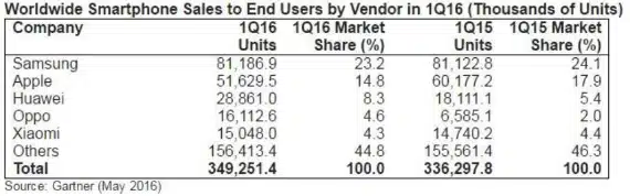 Αξίζει να σημειωθεί ότι η Oppo έκανε αξιοσημείωτο άλμα πηγαίνοντας από τα 6.5 εκατ. πωλήσεις το 2015 στα 16 εκατ. και πήρε μερίδιο αγοράς από τη Lenovo, που απουσιάζει από την πεντάδα. Η Lenovo είχε 33% πτώση στις παγκόσμιες πωλήσεις smartphones, συγκριτικά με την περασμένη χρονιά.