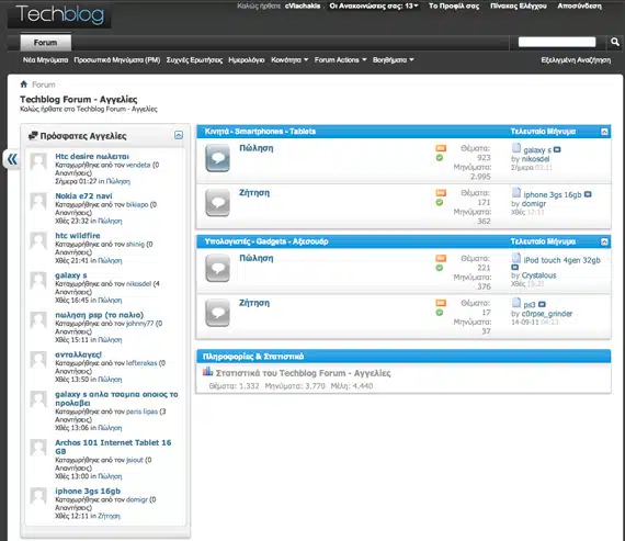 Αποκλειστικά και μόνο αγγελίες τεχνολογίας στο Forum του Techblog. Καθημερινά δεκάδες νέες αγγελίες για smartphones, tablets, υπολογιστές, gadgets και consoles. Τα 4.440+ μέλη μετράνε ήδη εκατοντάδες επιτυχημένες πωλήσεις. Βάλε σε αγγελία τις συσκευές σου και αναζήτησε άλλες ευκαιρίες στο Forum αγγελιών του Techblog. Επισκεφτείτε το Forum του Techblog https://techblog.gr/forum