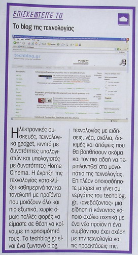 Το περιοδικό PC Magazine, στο τεύχος Αυγούστου που κυκλοφορεί, φιλοξενεί συνέντευξη του Κώστα Βλαχάκη, δημιουργού του techblog.gr. Συγκεκριμένα αυτό το μήνα, η στήλη “Greek Blogger” είναι αφιερωμένη στο techblog.gr, το ελληνικό blog για τις νέες τεχνολογίες. Ο Κώστας απαντάει σε 4 ερωτήσεις για το χώρο της τεχνολογίας, το ελληνικό ίντερνετ αλλά και για τα σχέδια […]
