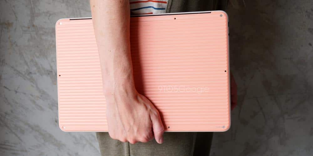 Κάθε τμήμα του πρωτότυπου Pixelbook Go που έχει στα χέρια του το 9to5Google είναι και σε μία διαφορετική απόχρωση του κοραλί, ή όπως το ονομάζει η Google “Not Pink”. Επίσης, η κάτω πλευρά του chromebook έχει ραβδώσεις, των οποίων η χρησιμότητα παραμένει άγνωστη.