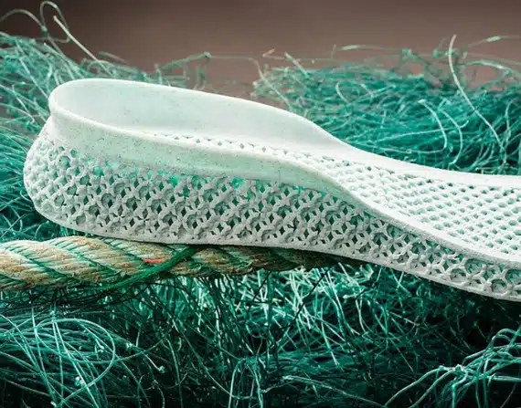 H Adidas συνεργάστηκε με την Parley for the Oceans (μια κίνηση με στόχο την εξάλειψη των πλαστικών απορριμμάτων που καταλήγουν στη θάλασσα) και δημιούργησε ένα νέο 3D-printed αθλητικό παπούτσι από πλαστικά σκουπίδια. Το πάνω μέρος είναι από πλαστικά που βρέθηκαν στη θάλασσα και η σόλα από 3D-printed πολυεστέρα και δίχτυα ψαρέματος.