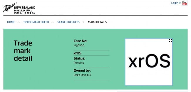 Πιο συγκεκριμένα, κατέθεσε το wordmark για το xrOS – το φημολογούμενο λειτουργικό σύστημα του headset στο Γραφείο Πνευματικής Ιδιοκτησίας της Νέας Ζηλανδίας.