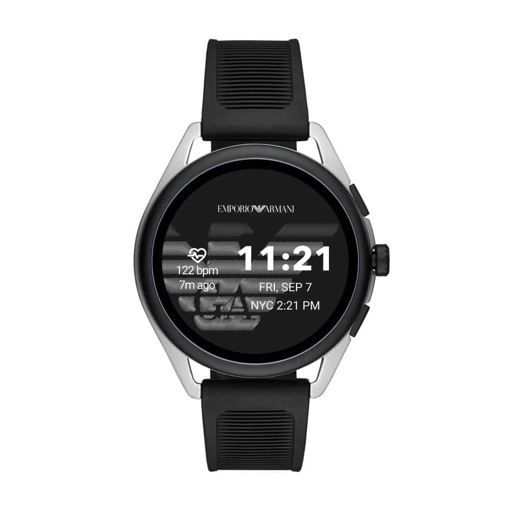 Από την άλλη, το Emporio Armani Smartwatch 3 έχει πιο κομψό και απλό σχεδιασμό με 1,28 ιντσών OLED οθόνη, 44mm διάμετρο, 22mm λουράκι και διατίθεται σε πολλαπλά χρώματα.