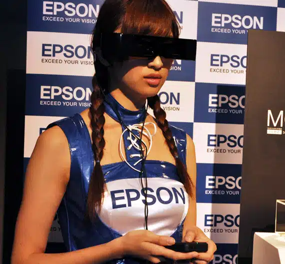 Η Epson δημιούργησε τα Moverio BT-100, φορητά γυαλιά με δύο οθόνες LCD ικανά να αναπαράξουν περιεχόμενο 3D. Τα γυαλιά Moverio ενσωματώνουν από μια οθόνη LCD ανάλυσης qHD 960×540 pixels σε κάθε φακό, ενώ όποτε επιλέξει ο χρήστης αυτά γίνονται διάφανα ώστε να δει το περιβάλλον του χωρίς να τα βγάλει.