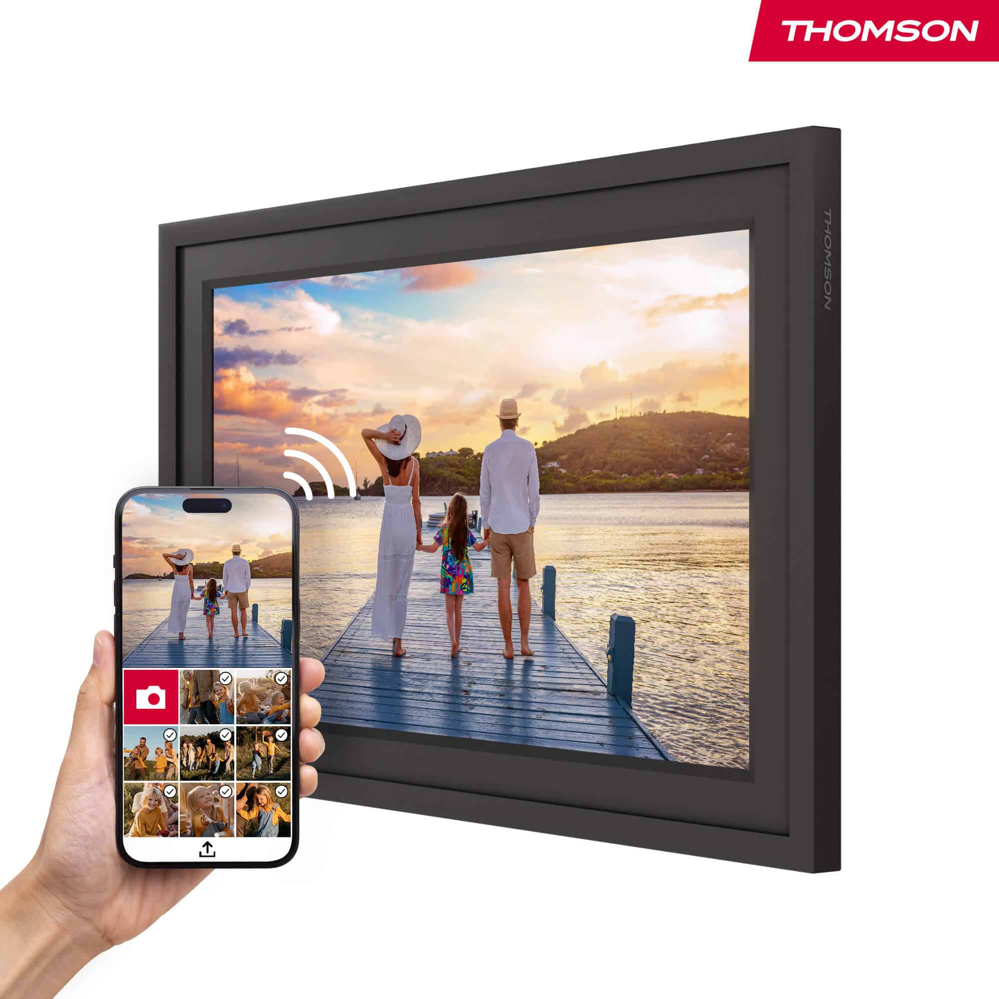 Thomson F10 Smart Photo Frame: 10’’ HD IPS οθόνη, WiFi sharing, 32GB αποθήκευση, touchscreen, app για iOS/Android. Μοιράσου φωτογραφίες άμεσα με τους δικούς σου — εύκολα και έξυπνα.