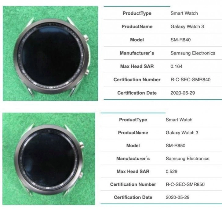 Σήμερα έχουμε τις πρώτες εικόνες του smartwatch, αποκαλύπτοντας μας το σχεδιασμό του. Τα SM-R840 και SM-R850 εμφανίστηκαν σε ιστοσελίδα πιστοποίησης της Νότιας Κορέας. Το SM-R840 είναι η μικρότερη έκδοση των 41mm, ενώ το SM-R850 είναι η μεγαλύτερη έκδοση στα 45mm, ενώ μάθαμε και τον δίκτυ SAR των δύο συσκευών, ο οποίος ανέρχεται στα 0.164 και 0.529 αντίστοιχα (η μέτρηση αφορά τη μέγιστη τιμή του δίκτυ που επηρεάζει το κεφάλι).