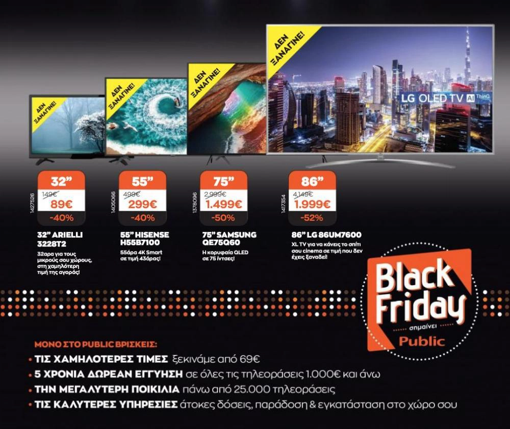 Όλες οι μεγάλες αλυσίδες έχουν βγάζει ενδιαφέρουσες προσφορές στις τηλεοράσεις. Ρίξτε μια ματιά στον κατάλογο Black Friday 2019 των Public και πείτε μας τι ξεχωρίσατε.