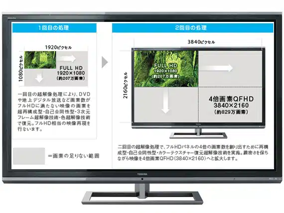 H Toshiba ανακοίνωσε για την αγορά της Ιαπωνίας την 55άρα τηλεόραση Regza 55X3 με πάνελ 3D που δεν χρειάζεται να φοράς γυαλιά και ανάλυση QFHD 3840×2160 pixels! Την επεξεργασία του βίντεο αναλαμβάνει ένας διπύρηνος επεξεργαστής εικόνας της Toshiba ο CEVO Duo. Η Toshiba Regza 55X3 κυκλοφορεί μέσα στο μήνα με τιμή 11.000 δολάρια Αμερικής.