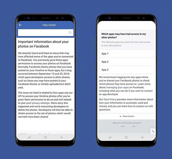 Το συγκεκριμένο bug έπληξε τους χρήστες που χρησιμοποίησαν το Facebook Login και επέτρεψαν σε τρίτες εφαρμογές την πρόσβαση στις φωτογραφίες τους. Το πρόβλημα, πρέπει να τονίσουμε, έχει διορθωθεί αλλά ορισμένες εφαρμογές είχαν πρόσβαση σε φωτογραφίες των χρηστών μεταξύ 13 και 25 Σεπτεμβρίου 2018. Το πρόβλημα αυτό έδωσε την πρόσβαση σε 876 developers από 1500 εφαρμογές, στις φωτογραφίες περίπου 6.8 εκατομμυρίων χρηστών, κάτι το οποίο από μόνο του είναι ένα σοβαρό συμβάν.