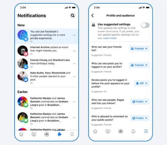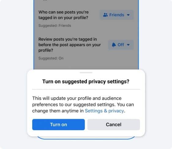 Οι νέοι έφηβοι που εγγράφονται στο Facebook θα έχουν προεπιλεγμένες τις πιο αυστηρές επιλογές σε ορισμένες ρυθμίσεις απορρήτου, όπως ποιος μπορεί να δει τη λίστα φίλων τους, άτομα και σελίδες που ακολουθούν, αναρτήσεις που έχουν επισημανθεί, αλλά και ποιος επιτρέπεται να σχόλια σε αναρτήσεις. Παρόμοιες ρυθμίσεις είναι διαθέσιμες και στο Instagram.