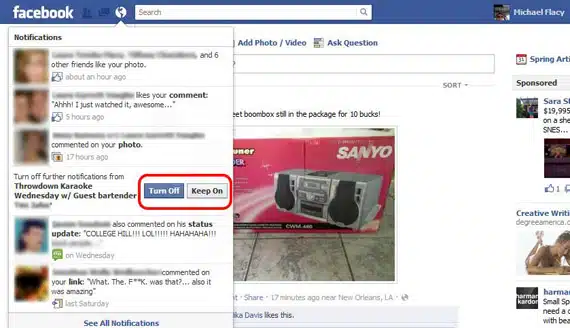 Η διαχείριση των ειδοποιήσεων είναι σημαντική υπόθεση, κάτι για το οποίο μπορούν να σας ειδοποιήσουν όλοι οι χρήστες του Facebook που έχουν περισσότερους από 200 φίλους στο κοινωνικό δίκτυο, δηλαδή σχεδόν όλους μας! Εμφανίζεται ένα x στη δεξιά πλευρά μίας ειδοποίησης και σας επιτρέπει έπειτα να επιλέξετε την πολιτική που θα ακολουθείται σε όλες τις ανάλογες ειδοποιήσεις στο μέλλον.