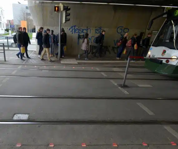 Σύμφωνα με τις αρχές, η ιδέα για τα εν λόγω φανάρια ήρθε όταν ένα 15χρονο κορίτσι έχασε τη ζωή του επειδή περπατούσε και είχε τα μάτια στο κινητό, μην μπορώντας να δει το διερχόμενο τραμ.