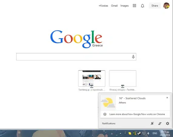 Είναι κάποιοι από εσάς που χρησιμοποιούν Google Now; Το περιμένατε και για Desktops; Εγώ προσωπικά το χρησιμοποιώ αρκετά στην καθημερινότητά μου, από την παρακολούθηση του καιρού και των νέων μέχρι την τελευταία ήττα της Arsenal 🙁 . Ελληνικές ομάδες δυστυχώς δεν συμπεριλαμβάνονται στα σκορ ακόμη.