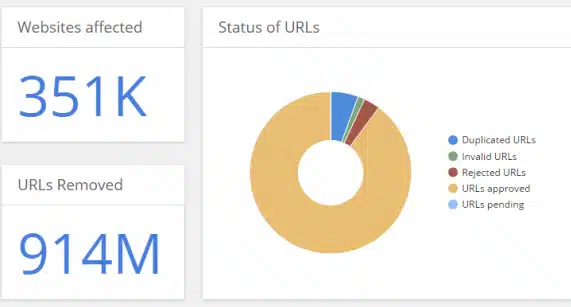 Για πρώτη φορά μέσα από το Google Transparency Report μαθαίνουμε τον αριθμό που έσβησε τελικά η Google. Η εταιρεία αναφέρει ότι υλοποίησε το 89.8% των αιτημάτων, φτάνοντας στα 914 εκατ. Συνολικά, οι δικαιούχοι ήθελαν να αφαιρεθεί περιεχόμενο από 351.000 διαφορετικές σελίδες.