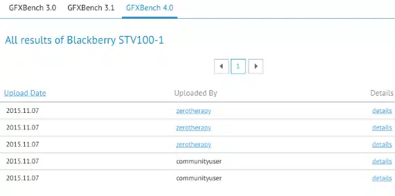 Στο GFXBench εμφανίστηκε ένα BlackBerry smartphone με κωδική ονομασία STV100-1, χρησιμοποιεί τον 64-bit οκταπύρηνο Exynos 7420 χρονισμένο στα 2.1GHz. Το νέο BlackBerry τρέχει Android 5.1.1 Lollipop, ενσωματώνει οθόνη 5.1 ιντσών QHD, μνήμη RAM 3GB, ενσωματωμένη μνήμη 32GB, κάμερα 16 Megapixel και εμπρόσθια κάμερα 5 Megapixel.