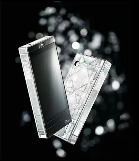 Οικονομική κρίση! Ο οίκος Dior παρουσίασε το Dior Phone που ακούει στο όνομα Reverie (ονειροπόλος). Το πανάκριβο κινητό αξίας 97.000 ευρώ αποτελείται από πλατίνα, διαμάντια και πέρλες. Εσωτερικά τρέχει μια έκδοση του λειτουργικού συστήματος Android και ενσωματώνει οθόνη αφής multi-touch, το βάρος του αγγίζει τα 137 γρ. Πηγή