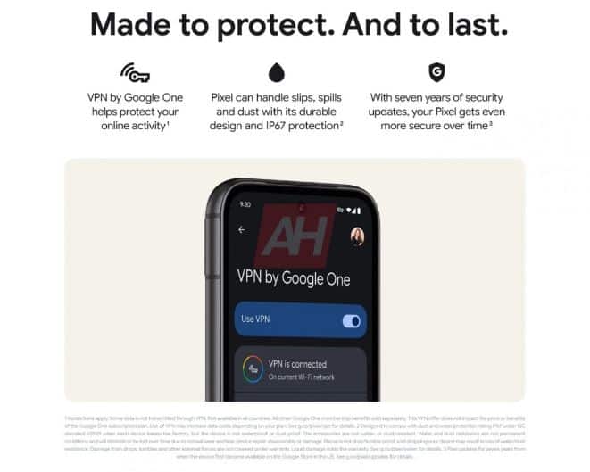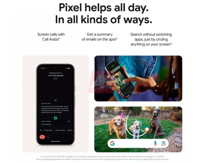 Σύμφωνα με αυτές, το Pixel 8a θα έχει το chipset Tensor G3, μια κάμερα “AI-mazing” με Best Take, Audio Magic Eraser και Night Sight, «κρυστάλλινες κλήσεις, ακόμα και όταν ο καλών σας βρίσκεται σε θορυβώδες μέρος», «γρήγορη φόρτιση» και «αξιόπιστη ολοήμερη μπαταρία», πιστοποίηση IP67 για αντοχή στη σκόνη και το νερό και θα λάβει επτά χρόνια ενημερώσεων ασφαλείας όπως τα Pixel 8 και Pixel 8 Pro.