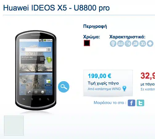 Την περασμένη εβδομάδα σας είχαμε μεταφέρει πληροφορίες που είχαμε για την επικείμενη κυκλοφορία ενός αναβαθμισμένου Huawei X5 με επεξεργαστή 1GHz. Από εχθές, στην επίσημη ιστοσελίδα της WIND φιγουράει το Huawei Ideos X5 Pro με τιμή 199 ευρώ. Το κινητό δεν κυκλοφορεί ακόμα αλλά το περιμένουμε κάπου μέσα στις επόμενες εβδομάδες. To Huawei X5 Pro δεν […]