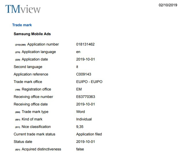 Η Xiaomi πριν λίγο καιρό είχε κακοχαρακτηριστεί για την επιθετική τακτική που ακολουθούσε με τις διαφημίσεις οι οποίες εμφανίζονταν σε οποιοδήποτε σημείο του smartphone. Σύμφωνα με ένα trademark που εντοπίστηκε στο European Union Intellectual Property Office (EUIPO) στις 1 Οκτωβρίου, η Samsung ενδέχεται να ακολουθήσει την ίδια τακτική.