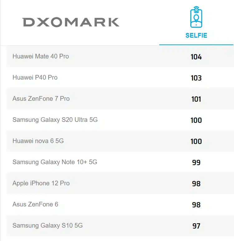 Εεεεε όχι και την έβδομη θέση. Όλοι έχουμε μάτια και βλέπουμε. Πληρώνεται σίγουρα το DxOMark. Το iPhone (κάτσε να βάλω και άλλο ένα κινητό για να μην καρφωθώ.χμ για να σκεφτώ. Θα βάλω την ναυαρχίδα της Samsung μιας και είναι 1η δύναμη στις πωλησεις, βέβαιααααα για μένα είναι 2η δύναμη γενικά) μαζί με το Ultra Note 20 έχουν τις καλυτερες selfie κάμερες αυτή τη στιγμή. Ξαναεχω μάτια και μπορώ να κρίνω από διάφορα reviews που έχω δει.