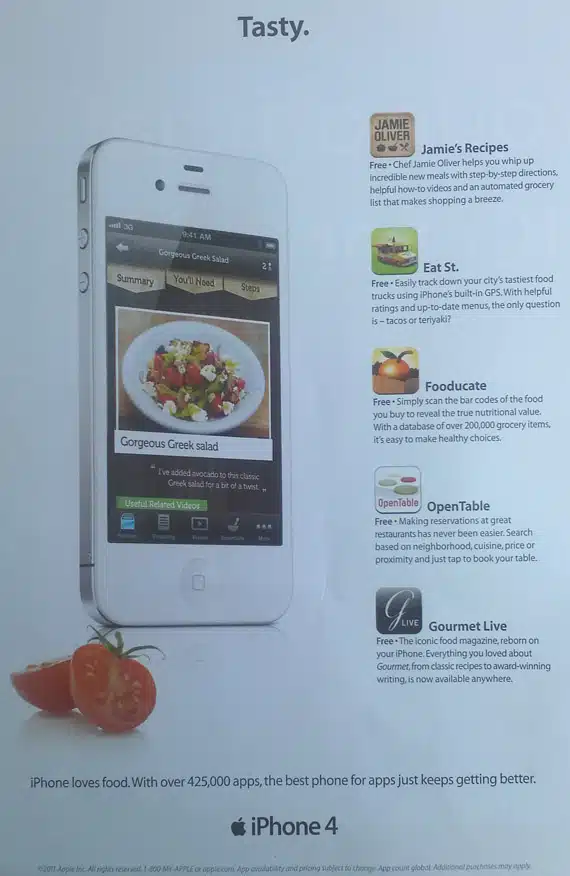 Επισης ειναι σπανιο που βαζει μονη της η Apple διαφημιση, οπως γνωριζουμε δεν βαζει γενικα διαφημισεις και οταν το κανει ειναι σε συνεργασια με τις εταιριες κινητης τηλεφωνιας, οπως Sprint και ΑΤ&T.