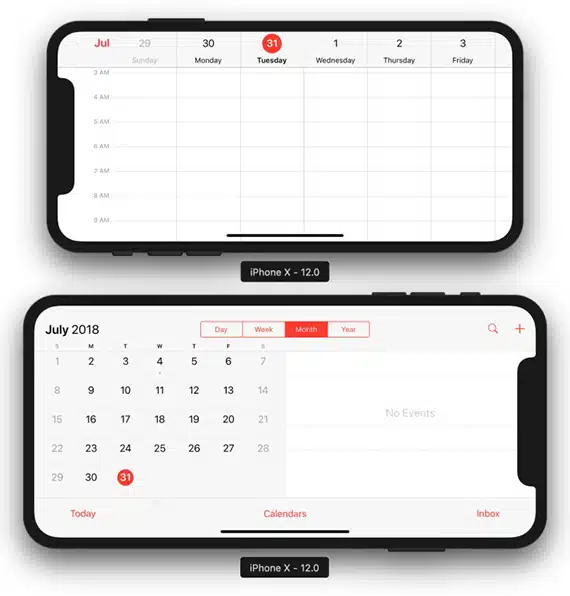 Στην εφαρμογή Messages, μόλις γυρίσουμε το iPhone σε οριζόντια διάταξη, εμφανίζεται η λίστα με τις συνομιλίες στην αριστερή πλευρά της οθόνης και το περιεχόμενο της συνομιλίας που έχουμε επιλέξει στα δεξιά. Αλλαγές παρατηρούνται και στην εφαρμογή του ημερολογίου της Apple όπου στα αριστερά εμφανίζεται ολόκληρος ο μήνας και στα δεξιά τα γεγονότα που έχουμε δημιουργήσει ανάλογα με την ημέρα που έχουμε επιλέξει από το ημερολόγιο στα αριστερά.