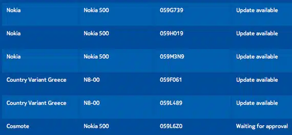 όταν πρωτοείδα ότι στο πίνακα δείχνει ότι είναι διαθέσιμο το update χάρηκα.. αλλά μετά συνειδητοποίησα ότι για nokia 500 αγορασμένα από cosmote(σαν το δικό μου)δεν είναι έτοιμη. οπότε υπομονή techblogers!