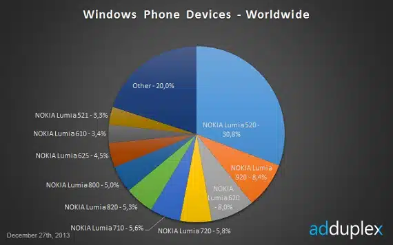 Με βάση τα συμπεράσματα που προκύπτουν από την πιο πρόσφατη έρευνα της εταιρείας AdDuplex που αντλεί δεδομένα από 2499 εφαρμογές Windows Phone, το Nokia Lumia 520 κατέχει ποσοστό 30% στην πλατφόρμα Windows Phone σε παγκόσμιο επίπεδο. Αν μάλιστα συμπεριλάβουμε και το “αδερφάκι” του, Nokia Lumia 521, τότε το ποσοστό αυτό αυξάνεται στο 34%.