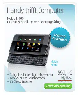 Γερμανία, Ιταλία και μερικές ακόμα ευρωπαϊκές χώρες, μπορούν από σήμερα να αγοράσουν το Nokia N900, το κινητό που θα αλλάξει το τοπίο στα λειτουργικά συστήματα, φέρνοντας το “ανοιχτό” Maemo σε όλους. Στην καρδιά του N900 χτυπάει ένας επεξεργαστής στα 600MHz μαζί με μνήμη RAM σχεδόν 1GB και αποθηκευτικός χώρος 32GB. Η οθόνη είναι αφής 3,5 ιντσών.