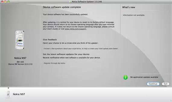 H εφαρμογή δουλεύει χωρίς κανένα ιδιαίτερο πρόβλημα, αν και δεν είναι σε τελική έκδοση. Η αναβάθμιση απαιτεί μόλις λίγα βήματα, αφού έχετε συνδέσει το κινητού σας στον Apple υπολογιστή σας. Ακόμα δεν υπάρχει υποστήριξη για αναβάθμιση εφαρμογών μέσα από το ίδιο περιβάλλον και η Nokia δεν μας έδωσε κάποια πληροφορία για το πότε θα είναι αυτή διαθέσιμη.