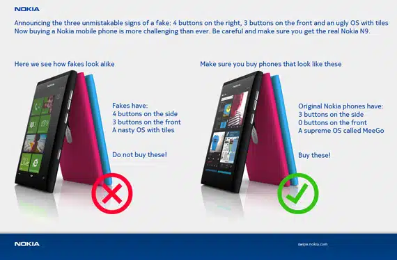 Για να μην πάθετε εγκεφαλικό διαβάζοντας τον τίτλο του άρθρου, να σας ενημερώσουμε ευθύς εξ’ αρχής ότι πρόκειται για πλάκα. Κάποιος ανώνυμος που λατρεύει το Nokia N9 με το λειτουργικό σύστημα MeeGo δημιούργησε το παρακάτω εικαστικό δίνοντας οδηγίες και συμβουλές στο τι να προσέξετε για να μην την πατήσετε και αγοράσετε το ίδιο (Lumia 800) […]