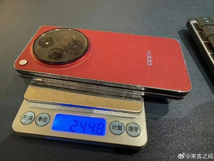 Ο Διευθύνων Σύμβουλος της Weibo δημοσίευσε μια εικόνα της αναδιπλούμενης ναυαρχίδας πάνω σε μια ψηφιακή ζυγαριά που γράφει 244,8 g.