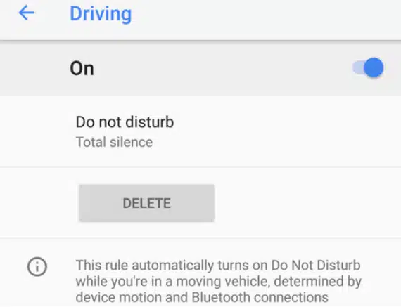 Τελικά δεν είναι αυτή η μόνη λειτουργία του. Σου επιτρέπει να επιλέξεις να ενεργοποιείται αυτόματα το Do Not Disturb mode όταν βρίσκεσαι σε κινούμενο όχημα. Το κινητό θα αντιλαμβάνεται ότι είσαι μέσα στο αυτοκίνητο, από τις συνδέσεις Bluetooth (αν για παράδειγμα συνδέσεις το κινητό με το αυτοκίνητο) και την κίνηση που εντοπίζει η συσκευή.