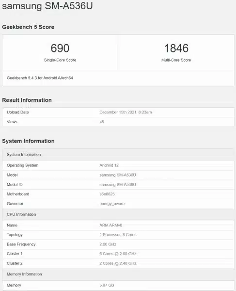 Μια συσκευή Samsung με κωδικό μοντέλου SM-A536U, που είναι πιθανό το Galaxy A53 5G (αν σκεφτεί κανείς πως το A52 5G είναι SM-A526U), εμφανίστηκε στο Geekbench με τις βασικές προδιαγραφές του.