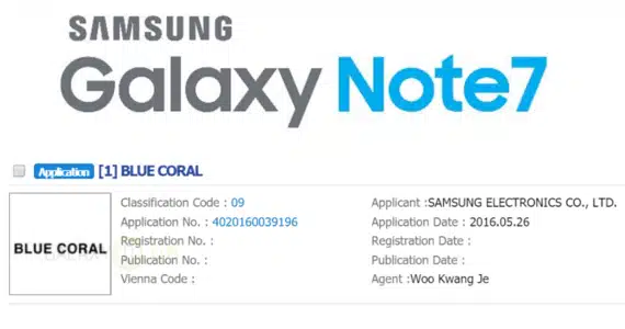 Όπως φαίνεται όμως το logo που δημοσίευσε ο @evleaks δεν αποκάλυψε μόνο το όνομα, αλλά και το μπλε χρώμα. Σύμφωνα με αίτηση που κατέθεσε η ίδια τον περασμένο μήνα, το όνομα έχει κατοχυρωθεί στη Samsung και ονομάζεται Blue Coral.