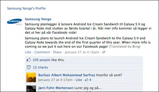Έως και το τέλος Μαρτίου και όπως έχει προγραμματιστεί η Samsung θα διαθέσει επίσημα την αναβάθμιση Android 4.0 Ice Cream Sandwich στο Samsung Galaxy S II και το tabletόφωνο Samsung Galaxy Note. Η διαβεβαίωση ήρθε από το επίσημο Fan Page της Samsung Νορβηγίας και γεμίζει με χαρά τους φίλους της Sammy. Εδώ το post της […]