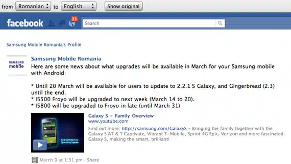 Η Samsung Ρουμανίας έκανε ένα status update στο επίσημο Facebook Fan Page της που αναστάτωσε τους κατόχους του smartphone Samsung Galaxy S. Σύμφωνα με αυτό, μέχρι το τέλους Μαρτίου θα ξεκινήσει η διάθεση της αναβάθμισης σε Android 2.3 Gingerbread. Αυτό βέβαια δεν σημαίνει ότι εκείνη την περίοδο θα ξεκινήσει και για τις υπόλοιπες Ευρωπαϊκές χώρες […]
