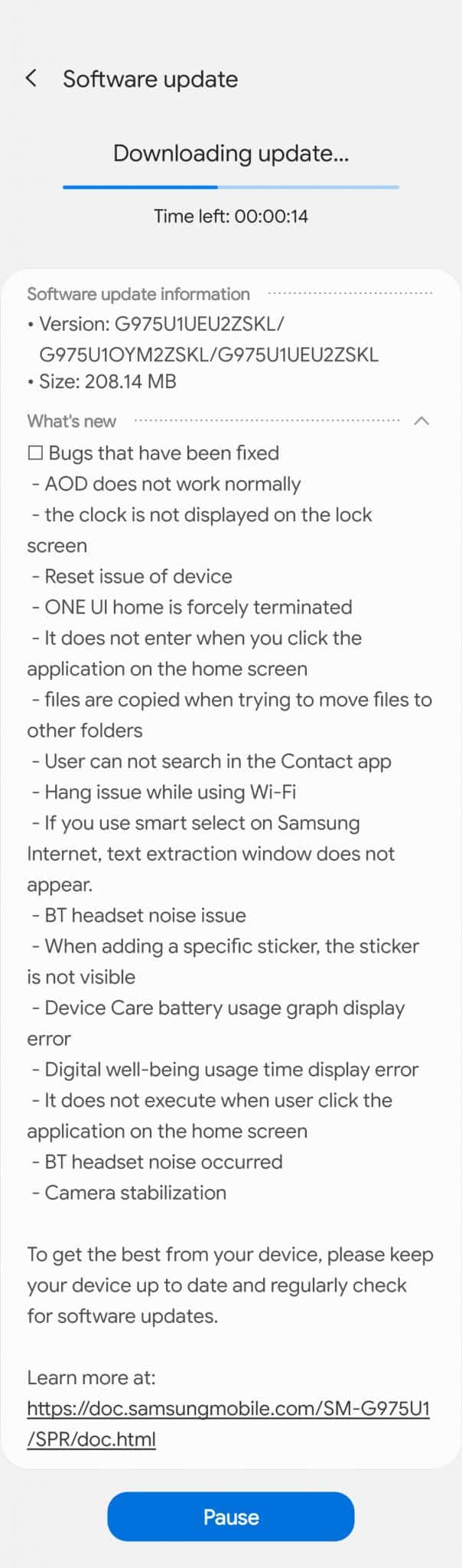 Το update διορθώνει ορισμένα σοβαρά προβλήματα που εμφανίστηκαν στο Wi-Fi αλλά και την σταθερότητα της κάμερας. Επιπλέον, είχαν εντοπιστεί ορισμένες τυχαίες επανεκκινήσεις και noice στα Bluetooth headset. Ταυτόχρονα με τα σοβαρά προβλήματα, η Samsung διόρθωσε την γενικές επιδόσεις του One UI 2.0 ενώ το Android security patch level είναι της 1ης Δεκεμβρίου.