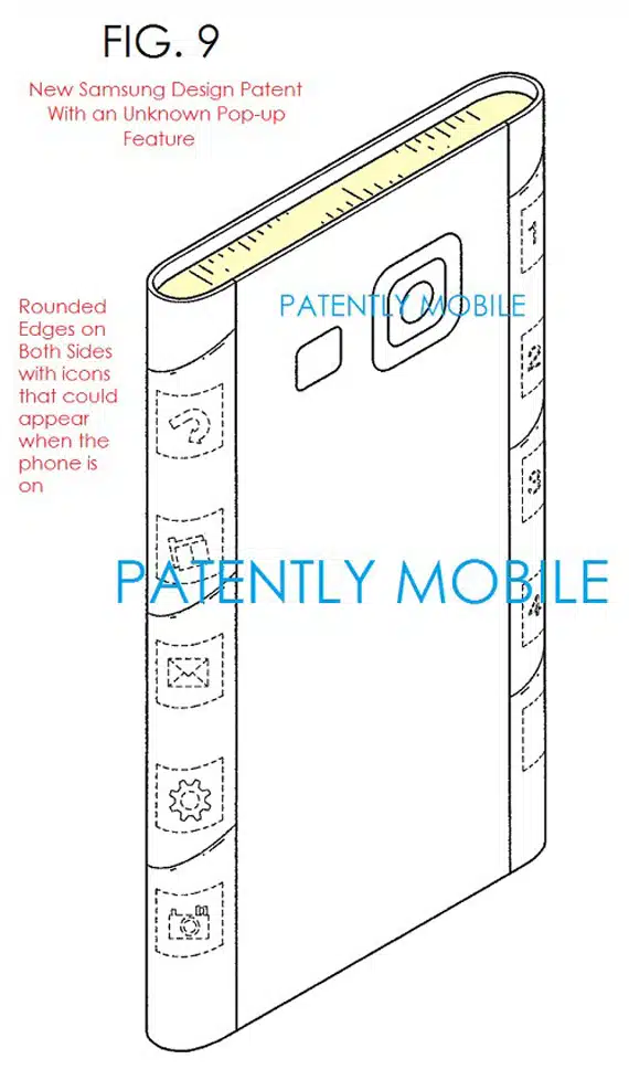 Πράγματι, στο παρακάτω σκίτσο φαίνεται μια αμφίπλευρα κυρτή οθόνη που εκτείνεται ως το πίσω μέρος και που ίσως σαν σχεδιασμός να επιτρέψει την αλληλεπίδραση του χρήστη με την συσκευή του (GUI). Κάτι ακόμα άξιο προσοχής στο σκίτσο που διέρρευσε είναι ένα καινούργιο χαρακτηριστικό που το περιγράφεται σαν ‘Pop-up’.