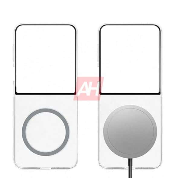 Η διαφανής θήκη της Samsung διαθέτει επίσης μια έκδοση που αντικαθιστά τη λαβή με έναν δακτύλιο μαγνητών. Στόχος τους είναι να παρέχουν υποστήριξη Qi2 και τα renders ίσως επιβεβαιώνουν ότι το Galaxy Z Flip7 δεν θα έχει ενσωματωμένο MagSafe. Αν και δεν υπάρχουν πληροφορίες σχετικά με την τιμολόγηση, αυτή η έκδοση πιθανότατα θα είναι πιο ακριβή από την βασική διαφανή θήκη.