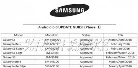 Για τη Samsung τα leaks έδειχναν ότι η αναβάθμιση θα ξεκινούσε το τελευταίο τρίμηνο του 2015, αλλά τελικά πήρε αναβολή για Ιανουάριο με Φεβρουάριο. Ήδη διανύουμε την τελευταία εβδομάδα του Ιανουαρίου και νέα διαρροή δείχνει ότι τα περισσότερα updates αναμένονται Φεβρουάριο με Μάρτιο, ενώ φτάνουμε μέχρι και Απρίλιο.
