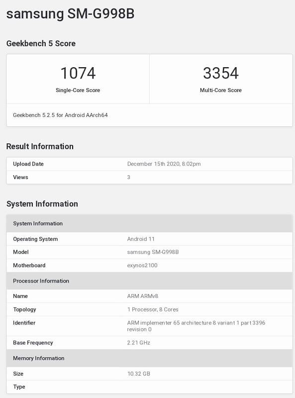 Συγκεκριμένα, ο Exynos 2100 κατάφερε να φτάσει τους 1074 πόντους στο single-core test του GeekBench και τους 3354 πόντους στο multi-core test. Από την άλλη, μία μυστήρια συσκευή της Vivo, που είναι η μόνη που έχουμε προς το παρόν για συγκριτικό, κατάφερε να φτάσει τους 1135 πόντους single-core και 3681 πόντους στο multi-core test, οπότε αναμένουμε παρόμοια αποτελέσματα και με την έκδοση Snapdragon 888 του Galaxy S21.