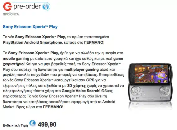 Τιμή-κράχτη έβαλαν τα καταστήματα Γερμανός για όσους θέλουν να προ-παραγγείλουν το smartphone Sony Ericsson Xperia Play. Τρεις μήνες πριν οι πληροφορίες μας έκαναν λόγο για τιμή πάνω από τα 600 ευρώ, όμως η καθυστέρηση της κυκλοφορίας του Play λόγο του σεισμού στην Ιαπωνία και η πλήρης διάθεση στην αγορά των περισσότερων μοντέλων από τις ανταγωνίστριες […]