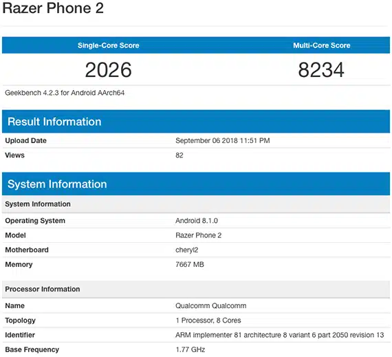 Η Razer μέσω του αντιπροέδρου της, Chen Xiaoping, δήλωσε πως η εταιρεία ετοιμάζει το επόμενο gaming smartphone και άφησε υπονοούμενο πως θα κυκλοφορήσει πρώτα για την αγορά της Κίνας και μετά στις υπόλοιπες αγορές ανά τον κόσμο. Αν και σε αρχικό στάδιο το Razer Phone 2 πέτυχε 2026 πόντους στο single-core και 8234 πόντους στο multi-core test, με τις επιδόσεις να είναι χαμηλότερες από αυτές των υπόλοιπων smartphone με το συγκεκριμένο επεξεργαστή, κάτι που δικαιολογείται μιας και η ανάπτυξη της συσκευής είναι ακόμα σε αρχικό στάδιο.