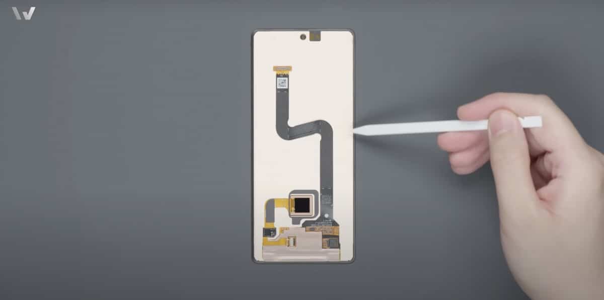 Μπορούμε να εντοπίσουμε ένα τεράστιο φύλλο χαλκού που βοηθά στην αποφυγή υπερθέρμανσης του πάνελ της οθόνης μαζί με έναν σαρωτή δακτυλικών αποτυπωμάτων υπερήχων δεύτερης γενιάς Qualcomm. Η μητρική πλακέτα διαθέτει σχεδιασμό διπλής στοίβας με τρεις αισθητήρες κάμερας στο επάνω μέρος που διατηρούνται στη θέση τους με ένα ενδιαφέρον πλαστικό κάλυμμα που φιλοξενεί επίσης το καλώδιο φλας, το μικρόφωνο, τον αισθητήρα φωτός περιβάλλοντος και τη μονάδα εστίασης λέιζερ. Στη συνέχεια βλέπουμε από κοντά τους αισθητήρες της κάμερας μαζί με μερικά δείγματα φωτογραφιών.