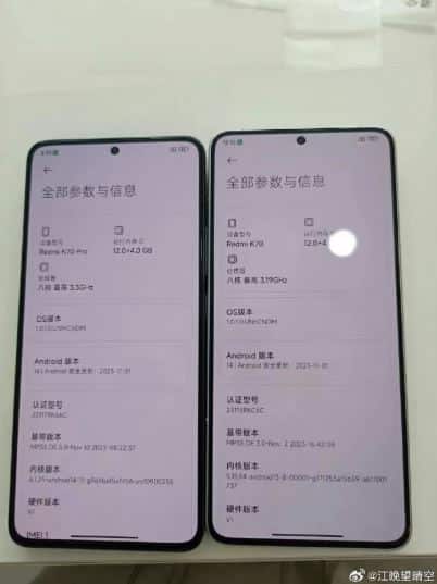 Το μενού ρυθμίσεων επιβεβαιώνει ότι και τα δύο τηλέφωνα θα τρέχουν το Xiaomi HyperOS 1.0.1 που βασίζεται στο Android 14 και θα έχουν 12GB RAM. Το K70 Pro θα είναι εξοπλισμένο με τον κορυφαίο επεξεργαστή Snapdragon 8 Gen 3 της Qualcomm, ενώ το K70 φαίνεται να τρέχει με τον παλαιότερο επεξεργαστή Snapdragon 8 Gen 2. Το Redmi K70E θα φοράει τον πρόσφατα ανακοινωμένο Dimensity 8300 της MediaTek.