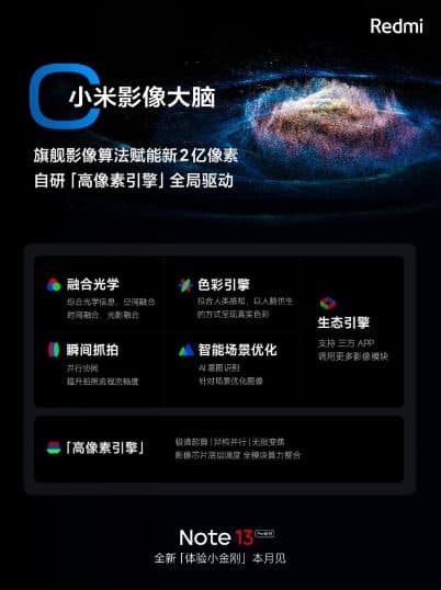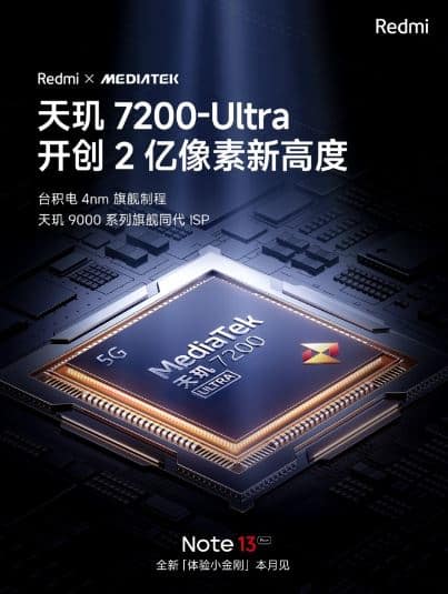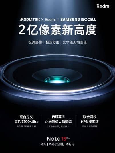 Ο λογαριασμός της Redmi στο κινεζικό Weibo αποκάλυψε τις λεπτομέρειες σε μια σειρά από teaser, αναφέροντας την τριμερή συνεργασία με τη Mediatek και τη Samsung που έχει στόχο να προσφέρει «ένα νέο επίπεδο στις εικόνες 200 MP». Ο αισθητήρας ISOCELL HP3 είναι πανομοιότυπος με αυτόν που χρησιμοποιείται στο Redmi Note 12 Pro+, αλλά το νέο chipset 4nm θα προσφέρει εκλεπτυσμένη επεξεργασία για τη βελτίωση της τελικής απόδοσης.